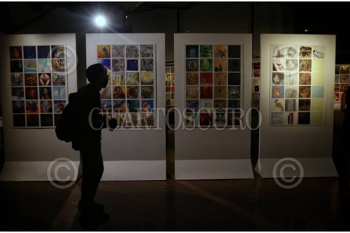 CIUDAD DE MÉXICO, 21OCTUBRE2021. - Como parte de la conmemoración de los 700 años del fallecimiento de Dante Alihieri, se inauguró la exposición conformada por 700 obras de 140 artistas mexicanos y curada por Fernando Aroche Bello. La muestra estara abierta al público a partir de mañana 22 de octubre en el Claustro de Sor Juana ubicado en el corazón del Centro Histórico y permanecera 3 semanas antes de partir a Italia. FOTO: ANDREA MURCIA /CUARTOSCURO.COM