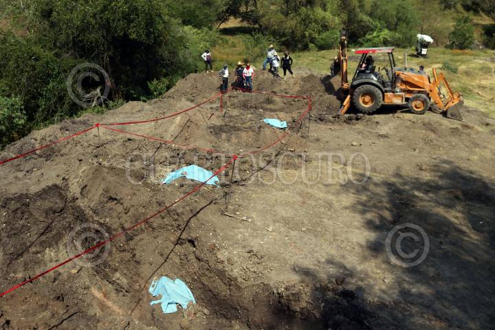YECAPIXTLA, MORELOS, 21OCTUBRE2021. La VI Brigada Nacional de Búsqueda ha realizado ocho hallazgos de restos óseos en este municipio ubicado en el oriente del estado. En el paraje de la mina de Mixtlalcingo hasta hoy se documentaron siete hallazgos positivos, en uno de ellos la Fiscalía General del Estado ya exhumó una osamenta completa. Las buscadoras, apoyadas por elementos de la Guardia Nacional, la Comisión Nacional y Estatal de Búsqueda y de maquinaria pesada, han removido la tierra en este paraje que se perfila como un sitio usado para enterrar víctimas. La FGE informó que dará seguimiento a las carpetas iniciadas por los hallazgos. FOTO: MARGARITO PÉREZ RETANA / CUARTOSCURO.COM