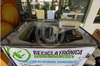 TOLUCA, ESTADO DE MÉXICO, 22OCTUBRE2021.- Durante todo el mes de octubre se llevará a cabo la Campaña de Acopio de Residuos Electrónicos 2021, que busca generar conciencia en la comunidad universitaria y público en general sobre la importancia del reciclaje de este tipo de aparatos, así como su tratamiento adecuado, fueron instalados contenedores en diversos espacios académicos y podrán ser depositados en los contenedores Computadoras portátiles, CPU, bocinas, módem, discos duros, celulares, cafeteras, monitores, entre otros. FOTO: CRISANTA ESPINOSA AGUILAR /CUARTOSCURO.COM