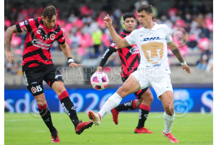 CIUDAD DE MÉXICO, 24OCTUBRE2021.- Los Pumas vencieron 3-1 a los Xolos de Tijuana, por los universitarios anotaron Arturo Ortiz, Juan Ignacio Dinenno y Fabio Álvarez, mientras que por los Xolos se hizo presente en el marcador Vladimir Loroña. Partido correspondiente a la jornada 15 del torneo Grita México Liga MX 2021 el equipo de los Pumas de la UNAM y los Xolos de Tijuana en el el Estadio Olímpico Universitario. FOTO: MOISÉS PABLO /CUARTOSCURO.COM