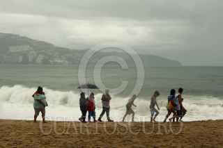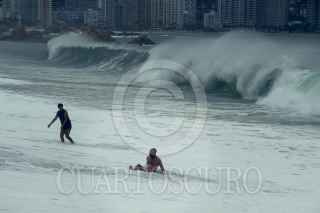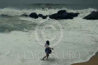 ACAPULCO, GUERRERO, 24OCTUBRE2021. - El paso del huracán Rick de categoría 1 a dejado afectaciones leves en el puerto de Acapulco, en donde a pesar del fuerte olaje y la lluvia turistas pasean por las playas, este domingo autoridades de Protección Civil del Estado informaron que el fenómeno meteorológico se encontraba a 210 kilómetros al sur del puerto de Zihuatanejo. FOTO: CARLOS ALBERTO CARBAJAL /CUARTOSCURO.COM