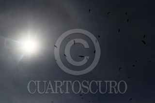 TEPOZTLÁN, MORELOS, 24OCTUBRE2021. Bandadas de zopilotes vuelan sobre los cadaveres de varias reses en la Reserva Ecologica del Texcal en el centro de la entidad. Estas aves que se alimentan de carroña habitan en todo el pais en tierras bajas. Imagen tomada el dia de ayer en el paraje conocido como La Laguna. FOTO: MARGARITO PÉREZ RETANA / CUARTOSCURO.COM