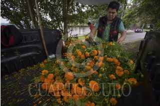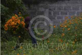 SAN PABLO COAPAN, VERACRUZ 25OCTUBRE2021.- La plaga de “la gallina ciega” mermó la cosecha de cempasúchil en San Pablo Coapan, municipio de Veracruz. Los productores afirman que, con un precio de 50 pesos el rollo, podrán recuperar los 10 mil pesos invertidos por cada hectárea. FOTO: YERANIA ROLÓN /CUARTOSCURO.COM