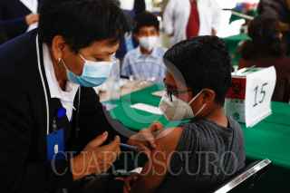 CIUDAD DE MÉXICO, 25OCTUBRE2021.- Inició la vacunación contra el Covid-19 a adolescente de 12 a 17 años con comorbilidades en dos sedes: Biblioteca Vasconcelos y el Centro de Estudios Superiores en Ciencias de la Salud (CENCIS-Marina). FOTO: MOISÉS PABLO/CUARTOSCURO.COM