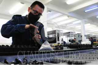 CIUDAD DE MÉXICO, 25OCTUBRE2021.- En las instalaciones de la Fábrica de Armas de la Dirección General de Industria Militar del Ejército Mexicano, se crea, a base de tecnología e ingeniería mexicana, el Fusil Xiuhcóatl, el cual es creado para el uso de los elementos del ejército y protección de los mexicanos y que nació a partir de la actualización de las propias armas de los militares. Un total de 30 mil fusiles son armados a lo largo de un años, cerca de 3 mil al mes y la mayoría de sus piezas son creadas y forjadas por ellos mismos. El Fusil consta de 112 partes siendo 42 fabricadas por ellos mismos, 24 son traídas del Centro de Investigación Aplicada y Desarrollo Tecnológico de Industria Militar, 43 son adquiridas comercialmente y tres más son manufacturadas. FOTO: DANIEL AUGUSTO /CUARTOSCURO.COM