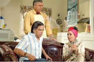 MÉXICO, D.F., 18OCTUBRE2006.- Escena del programa de televisión "Vecinos", en el que participan Moisés Suárez, Vadir Derbez y Macaria. FOTO: TELEVISA/CUARTOSCURO.COM