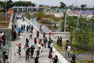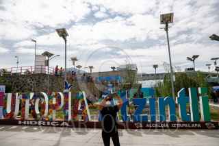 CIUDAD DE MÉXICO, 24OCTUBRE2021.- Clara Brugada, alcaldesa de Iztapalapa y Paco Ignacio Taibo II inauguraron "Utopía Hídrica Atzintli", un espacio público de casi 36 mil 500 metros cuadrados de instalaciones culturales, deportivas, sociales y recreativas en beneficio de miles de habitantes de la Sierra de santa Catarina. FOTO: MOISÉS PABLO/CUARTOSCURO.COM
