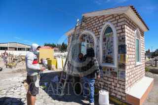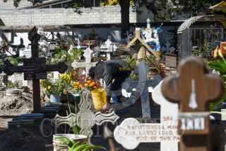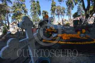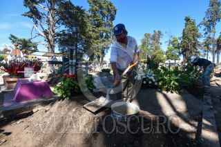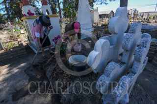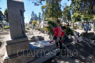 METEPEC, ESTADO DE MÉXICO, 26OCTUBRE2021.- Los panteones de este municipio se encuentran abiertos y los habitantes ya comienzan a acudir para limpiar las timbas de sus difuntos, precio a la celebración de Día de Muertos, y tenerlas listas, algunas ya lucen adornadas, algunos de sus familiares prefieren ir en estos días para evitar aglomeraciones el 1 y 2 de noviembre. FOTO: CRISANTA ESPINOSA AGUILAR /CUARTOSCURO.COM