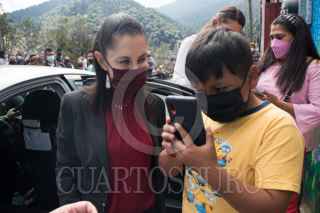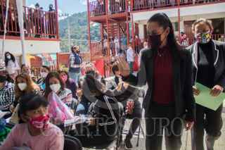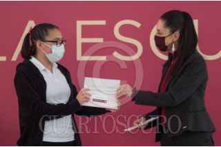 CIUDAD DE MÉXICO, 26OCTUBRE2021.- La Jefa del Gobierno, Claudia Sheinbaum Pardo, acudió a entregar tarjetas de "Mi Beca para Empezar" a alumnos de la Escuela Secundaria Diurna 312 "Arquímedes Caballero Caballero", que se encuentra en la alcaldía Magdalena Contreras. FOTO: VICTORIA VALTIERRA/CUARTOSCURO.COM