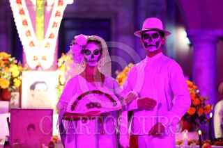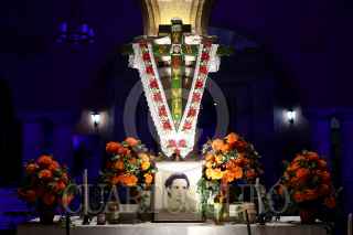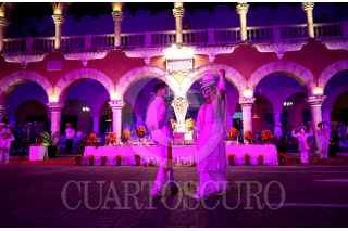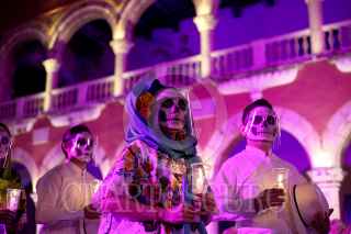 MÉRIDA, YUCATÁN, 26OCTUBRE2021.- Ayer lunes por la noche fue inaugurado el Festival de las Ánimas de Mérida 2021, el cual se realizó con acceso restringido debido a la pandemia de Covid-19. En los bajos del Palacio Municipal los participantes vistieron de ánimas y rezadores, portando velas que dieron una atmósfera única a este evento que marca el arranque de las festividades de Día de Muertos. FOTO: FRANCISCO BALDERAS/CUARTOSCURO.COM