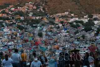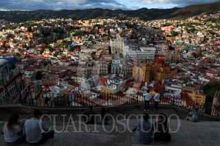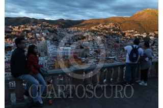 GUANAJUATO, GUANAJUATO, 26OCTUBRE2021. - Decenas de personas buscan observar el atardecer desde el emblemático mirador del monumento Pipila. FOTO: ANDREA MURCIA /CUARTOSCURO.COM
