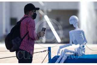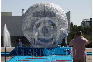 MONTERREY, NUEVO LEÓN, 27OCTUBRE2021.- Como parte de las festividades del día de muertos, una calavera gigante fue colocada en las afueras del Museo de Historia. FOTO: GABRIELA PÉREZ MONTIEL / CUARTOSCURO.COM
