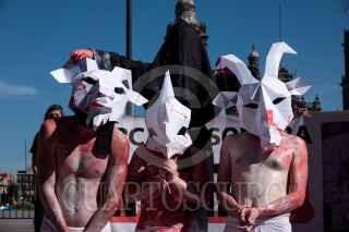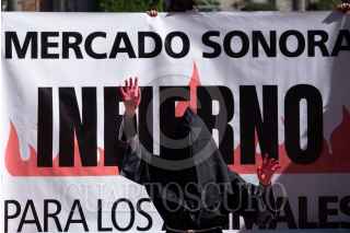 CIUDAD DE MÉXICO, 27OCTUBRE2021.- Integrantes del colectivo Animal Heroes protestaron frente al Antiguo Palacio del Ayuntamiento para exigir a la Jefa de Gobierno Claudia Sheinbaum acciones ante la venta y maltrato animal en el Mercado de Sonora. Los activistas expusieron que en las inmediaciones del inmuebles los animales son sometidos a reproducirse para la venta de crías, desechados en caso de estar enfermos e incluso sacrificados o vendidos para este fin con motivo de rituales. FOTO: GALO CAÑAS/CUARTOSCURO.COM