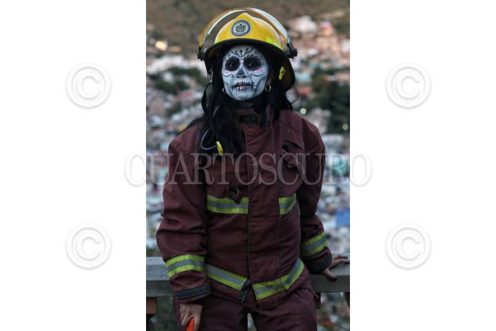 GUANAJUATO, GUANAJUATO, 27OCTUBRE2021. - Bomberos SIMUB es una asociación de bomberos voluntarios en servicio para los ciudadanos de Guanajuato. Esta tarde realizaron una visita al mirador monumento Pipila con el fin de realizarse unas fotos para su página web y también saludar a los visitantes y hablar de su labor. FOTO: ANDREA MURCIA /CUARTOSCURO.COM