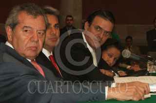 MÉXICO, D.F., 19OCTUBRE2006.- Porfirio Muñoz Ledo, Alejandro Rojas Díaz Dúran y Marcelo Ebraden el encuentro que sostuvo la Comisión Redactora para la Constitución del Distrito Federal que se llevo acabo en el museo de la ciudad de México. FOTO: SAUL LÓPEZ ESCORCIA/CUARTOSCURO.COM