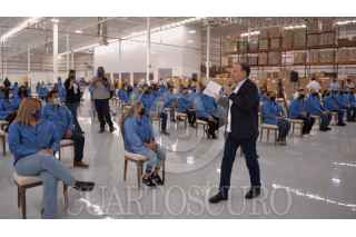 HERMOSILLO, SONORA. 27OCTUBRE2021.- El gobernador Alfonso Durazo, ante directivos de Creation Technologies, así como las y los trabajadores de la empresa, se comprometió a impulsar el crecimiento del estado facilitando el establecimiento de la inversión en Hermosillo y en todo Sonora, acompañando a las empresas e inversionistas con transparencia, pues en su gobierno, dijo, se combatirá de fondo la corrupción. El mandatario estatal, acompañado por María Elena Gallego, presidenta ejecutiva de grupo Collectron; Ana Cantú, vicepresidenta sénior, región México; Arnulfo Manríquez, vicepresidente de Operaciones; y Julio Bello, gerente de planta, detalló que Sonora se caracteriza por tener gente talentosa y mano de obra de extraordinaria calidad, grandes valores que hacen que cada vez más empresas se establezcan en la entidad para generar desarrollo económico y empleos bien remunerados. FOTO; GOBIERNO DEL ESTADO/CUARTOSCURO.COM