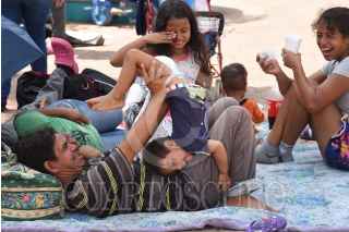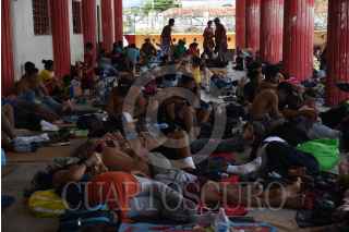 ESCUINTLA, CHIAPAS, 28OCTUBRE2021.- Integrantes de la Caravana por la Justicia, la Dignidad y la Libertad del Pueblo Migrante tomaron un descanso en el parque del centro de esta ciudad, después de caminar más de doce kilómetros desde Villa Comaltitlán. El contingente espera llegar a la Ciudad de México para solicitar refugio humanitario. FOTO: ISABEL MATEOS /CUARTOSCURO.COM