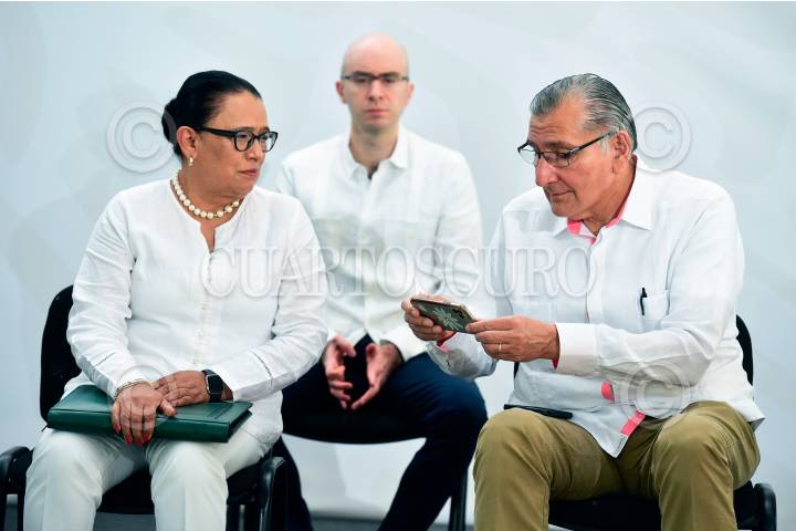 CAMPECHE, CAMPECHE, 29OCTUBRE2021.- Andrés Manuel López Obrador, Presidente de México, encabezó la conferencia mañanera en la Tercera Región Naval. Lo acompañaron Hugo López-Gatell, subsecretario de Salud; Rosa Icela Rodríguez, secretaria de Seguridad y Protección Ciudadana; Luis Cresencio Sandoval González, secretario de la Defensa Nacional; José Rafael Ojeda Durán, secretario de Marina; Layda Sansores, gobernadora de Campeche; Carlos Joaquín González, gobernador de Quintana Roo; Claudia Sheinbaum, Jefa de Gobierno; Adán Augusto López, secretario de Gobernación; y Jaime Bonilla, gobernador de Baja California. FOTO: PRESIDENCIA/CUARTOSCURO.COM