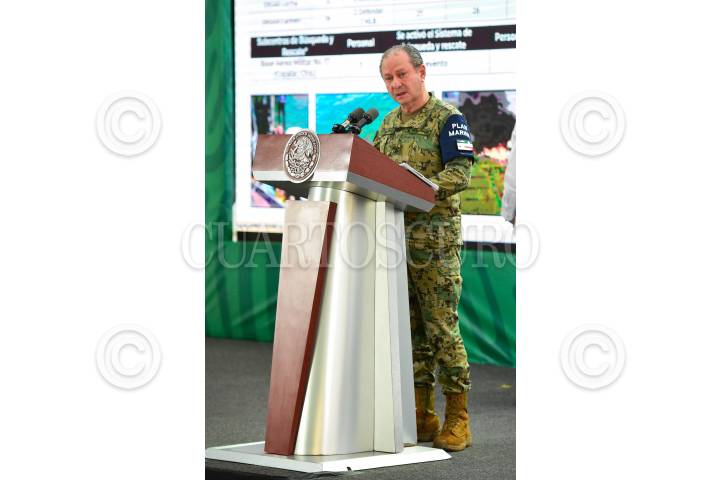 CAMPECHE, CAMPECHE, 29OCTUBRE2021.- Andrés Manuel López Obrador, Presidente de México, encabezó la conferencia mañanera en la Tercera Región Naval. Lo acompañaron Hugo López-Gatell, subsecretario de Salud; Rosa Icela Rodríguez, secretaria de Seguridad y Protección Ciudadana; Luis Cresencio Sandoval González, secretario de la Defensa Nacional; José Rafael Ojeda Durán, secretario de Marina; Layda Sansores, gobernadora de Campeche; Carlos Joaquín González, gobernador de Quintana Roo; Claudia Sheinbaum, Jefa de Gobierno; Adán Augusto López, secretario de Gobernación; y Jaime Bonilla, gobernador de Baja California. FOTO: PRESIDENCIA/CUARTOSCURO.COM