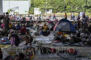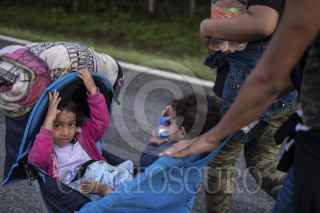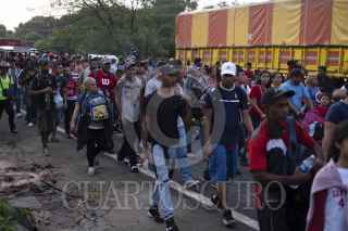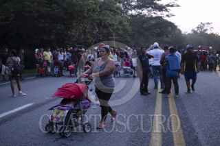 ESCUINTLA, CHIAPAS, 29OCTUBRE2021.- Miles de migrantes salieron antes del amanecer de la comunidad de Escuintla para dirigirse a Acacoyahua donde descansaran en el deportivo San Marcos y esperan entrar en diálogo con migración quien les ofrece regularización migratoria a mujeres y menores de edad en seis diferentes estados de la república mexicana. FOTO: ISABEL MATEOS /CUARTOSCURO.COM