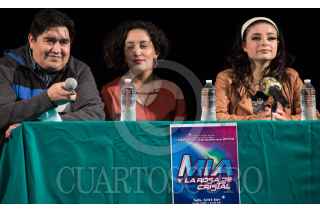 CIUDAD DE MÉXICO. 29OCTUBRE2021.- Erik Oliva, Paola Ruvalcaba, Violeta Isfel, Monty Álvarez y Edwin Montaño, productor y actores de la puesta en escena "Mía y la Rosa de Cristal", que se presenta a partir de mañana en el teatro Legaria, en la alcaldía de Miguel Hidalgo. FOTO: VICTORIA VALTIERRA/CUARTOSCURO.COM