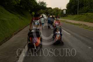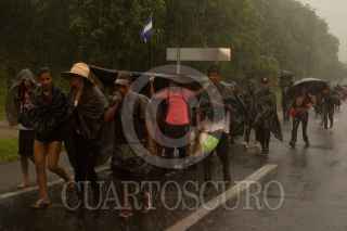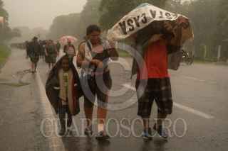 ACACOYAHUA, CHIAPAS, 29OCTUBRE2021.- La Caravana por la justicia, la dignidad y la libertad del pueblo migrante en camino decidió continuar su camino después de no llegar a ningún acuerdo con el Instituto Nacional de Migración, a los pocos minutos de salir del deportivo San Marcos en esta localidad, la lluvia empezó. Sin detenerse los migrantes llegaron a la comunidad de Uluapan a más de doce kilómetros de distancia donde pasarán la noche para descansar y continuar rumbo a La Ciudad de Mexico. FOTO: ISABEL MATEOS /CUARTOSCURO.COM