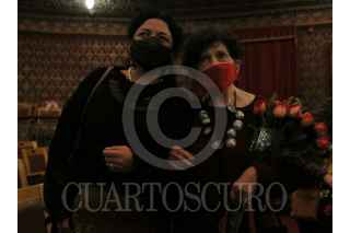 GUANAJUATO, GUANAJUATO, 29OCTUBRE2021. - Alejandra Frausto Guerrero, secretaria de Cultura y Margo Glantz, escritora al finalizar obra basada en la obra de la escritora en el Teatro Juárez como parte de la cartelera del Festival Internacional Cervantino 2021. FOTO: ANDREA MURCIA /CUARTOSCURO.COM