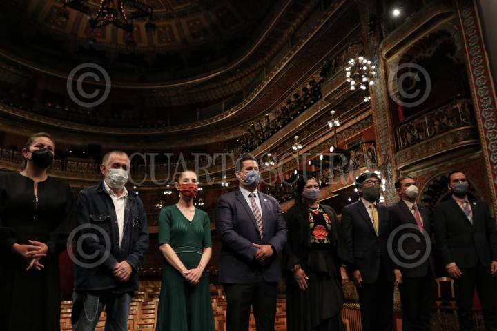 GUANAJUATO, GUANAJUATO, 30OCTUBRE2021.- Diego Sinhue Rodríguez Vallejo, Gobernador de Guanajuato; Alejandra Frausto Guerrero, secretaria de Cultura; Claudia Sheinbaum Pardo, jefa de Gobierno de la Ciudad; Mariana alberish Ordoñez, directora del Cervantino y Alejandro Magaña, presidente municipal Guanajuato encabezaron conferencia de prensa para dar a conocer detalles de la edición 50 del Festival Internacional Cervantino donde el país y ciudad invitada de honor serán Corea y Ciudad de México. FOTO: ANDREA MURCIA /CUARTOSCURO.COM