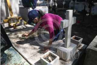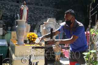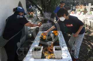 CIUDAD DE MÉXICO, 30OCTUBRE2021.- Habitantes de los ocho barrios de la alcaldía Iztapalapa acudieron a limpiar las tumbas de sus seres queridos en el Panteón General Iztapalapa. El horario para visitas será del 30 de octubre al 2 de noviembre en el horario de 8 a 16 horas. Dicho panteón se caracteriza porque sólo se entierran a personas y sus familiares nativas de los ocho barrios. FOTO: GRACIELA LÓPEZ /CUARTOSCURO.COM