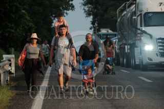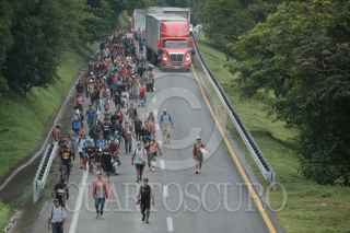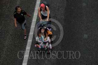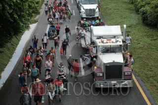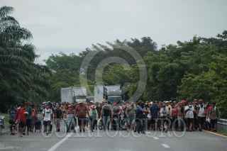 MAPASTEPEC, CHIAPAS, 30OCTUBRE2021.- Los integrantes de la Caravana por la justicia, la dignidad y la libertad del pueblo migrante en camino continuaron su travesía esta tarde rumbo a la ciudad de México. Las y los migrantes caminaron más de 15 kilómetros hasta el centro de esta localidad para descansar en el parque público y mañana seguir en la ruta. FOTO: ISABEL MATEOS /CUARTOSCURO.COM