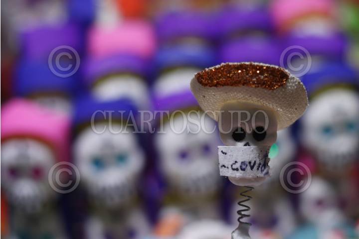 GUANAJUATO, GUANAJUATO, 31OCTUBRE2021.- El jardín Juárez cada año en temporada de día de muertos se llena de puestos de alfeñiques y charamuscas, dulces tipicos de Guanajuato con ingrediente principal de azúcar con el que hacen una masa y dan forma desde frutas hasta figurillas para el altar de muerto y figuras de personajes. Los dulceros artesanos han declarado que se encuentran contentos de que este año las ventas hayan incrementado por el regreso del Festival Internacional Cervantino. FOTO: ANDREA MURCIA /CUARTOSCURO.COM