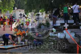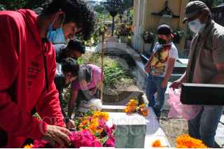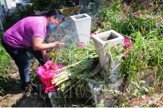 CIUDAD DE MÉXICO, 31OCTUBRE2021.- Cientos de familias visitan los panteones donde yacen los restos de sus seres queridos para realizar la limpieza de sus tumbas de cara a la celebración del Día de los Muertos los próximos 1 y 2 de noviembre. FOTO: DANIEL AUGUSTO /CUARTOSCURO.COM