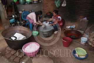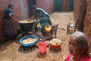 SANTA FÉ DE LA LAGUNA, MICHOACÁN, 31OCTUBRE2021.- Mujeres purépechas elaboraron tamales de carne y atole de pinole para ofrecer ofrenda a los vecinos que visiten el altar de su familiar en la casa donde haya fallecido. El 31 de octubre se reciben a los bebés y personas que no fueron bautizadas y el 1 de noviembre a las personas adultas, las familias reciben a sus seres queridos con altares, comida, fruta y una misa y los vecinos acuden a dejar alguna ofrenda ya sea comida o una veladora. FOTO: GRACIELA LÓPEZ /CUARTOSCURO.COM
