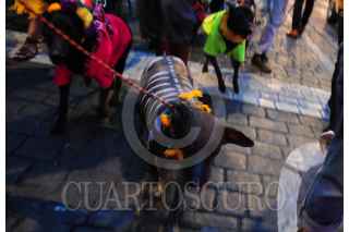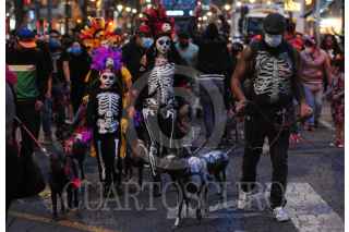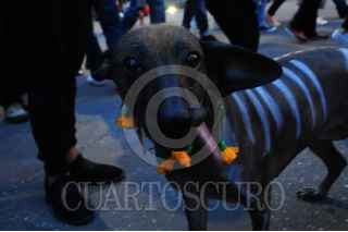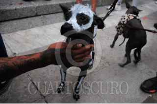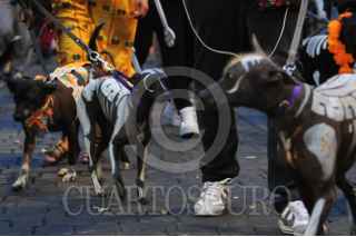 CIUDAD DE MÉXICO, 31OCTUBRE2021.- Perros Xoloitzcuincles realizaron una procesión junto a sus dueños avanzando desde el Palacio de Bellas Artes hasta el Zócalo, los perros fueron pintados y disfrazados para esta caminata donde a lo largo del trayecto los detuvieron para tomarles fotografías y acariciarlos. FOTO: DANIEL AUGUSTO /CUARTOSCURO.COM