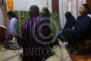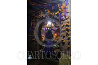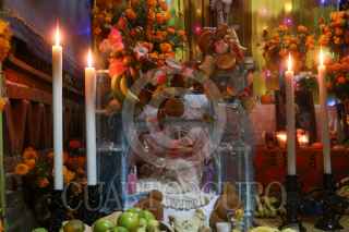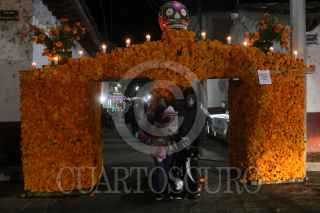 SANTA FÉ DE LA LAGUNA, MICHOACÁN, 31OCTUBRE2021.- Familias que perdieron a un ser querido este año realizaron un altar en su honor dentro de sus casas en donde colocaron flores, fotos, fruta, una cruz y veladoras; durante su recibimiento, la familia ofrece comida a los vecinos y turistas, y los vecinos que acuden a visitar el altar llevan ofrenda ya sea comida o una veladora. El altar que se coloca es en honor a un ser querido que haya fallecido este año, cada 31 de octubre se espera la llegada de los bebés o personas no bautizadas, conocidos como los "angelitos", el día 1 de noviembre se recibe a los adultos y el día 2 las familias acuden a prender las veladoras al panteón. FOTO: GRACIELA LÓPEZ /CUARTOSCURO.COM