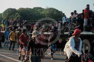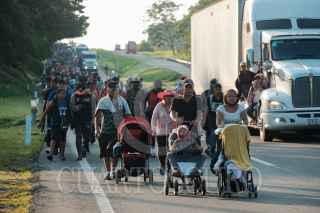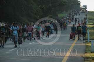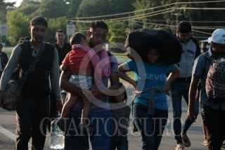 MAPASTEPEC, CHIAPAS, 01NOVIEMBRE2021.- Miles de migrantes continúan su travesía rumbo a la Ciudad de México, en donde planean pedir refugio político. Esta mañana en punto de las seis de la mañana emprendieron la caminata, en este contingente vienen muchos niños, por lo que a los pocos kilómetros de haber iniciado tuvieron que descansar un poco, esto debido al cansancio y a la intensidad del sol, para después retomar su camino. FOTO: ISABEL MATEOS /CUARTOSCURO.COM