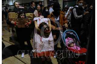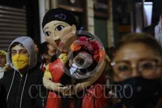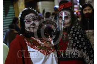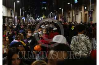 CIUDAD DE MÉXICO, 02NOVIEMBRE2021.- Desde la tarde de ayer hasta la madrugada miles de personas de todas edades se congregaron en el Centeo histórico disfrazados de distintos personajes generando aglomeraciones. La ciudad se mantiene en semáforo verde y con un porcentaje de vacunados al 90% en adultos. FOTO: ANDREA MURCIA /CUARTOSCURO.COM