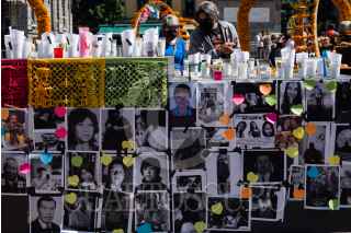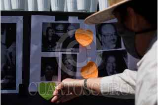 CIUDAD DE MÉXICO, 02NOVIEMBRE2021.- A un costado del Museo Nacional de Arte (MUNA) fue instalado un altar y memoria para las víctimas de Covid-19. Decenas de personas han acudido a colocar las fotos de sus seres queridos que han dejado este mundo, así como veladoras, flores y elementos que, según la tradición de Día de Muertos, guía a las almas hacía las ofrendas. Las fotos presentan mensajes de amor, deseos de un buen viaje y enseñanzas que las personas dejaron a sus seres queridos. En México la pandemia por Covid-19 ha cobrado la vida de más de 288 mil personas. Los altares son las representaciones emblemáticas del Día de Muertos en México. Según la tradición, los difuntos regresan los días 1 y 2 de noviembre para visitar a quienes continúan en vida y poder disfrutar las ofrendas que se les deja con sus alimentos preferidos. FOTO: GALO CAÑAS/CUARTOSCURO.COM