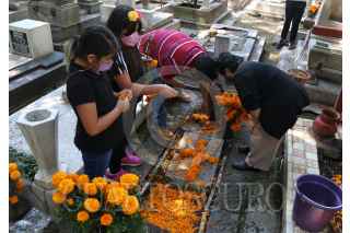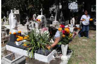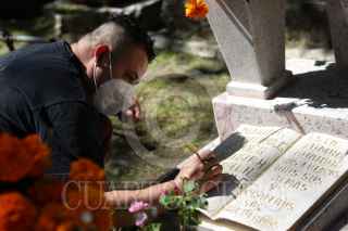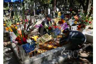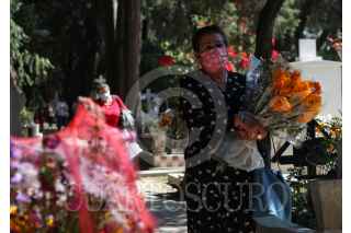CIUDAD DE MÉXICO, 02NOVIEMBRE2021.- Decenas de familias acudieron desde temprana hora al panteón Xico ubicado en Coyoacán, para limpiar y poner flores en las tumbas de sus seres queridos fallecidos. FOTO: ANDREA MURCIA /CUARTOSCURO.COM