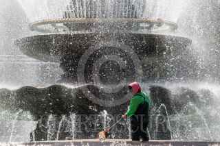 CIUDAD DE MÉXICO, 02NOVIEMBRE2021.- Un trabajador de limpieza asea la las aguas de la fuente de la Diana, en avenida Reforma. FOTO: MOISÉS PABLO/CUARTOSCURO.COM