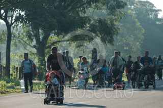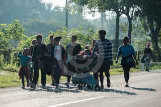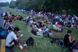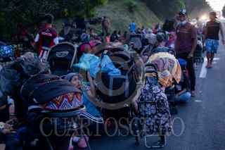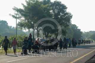 PIJIJIAPAN, CHIAPAS, 02NOVIEMBRE2021.- En punto de las 4 de la mañana miles de migrantes continuaron su travesía rumbo a la Ciudad de México en espera de una regulación migratoria. Durante más de ocho horas caminaron veinte kilómetros hasta llegar a Pijijiapan, donde fueron albergados en un espacio perteneciente a Protección Civil, ahí les proveerán de alimentos y agua, de acuerdo a información de policías que se encontraban en la entrada de la localidad. FOTO: ISABEL MATEOS /CUARTOSCURO.COM