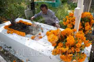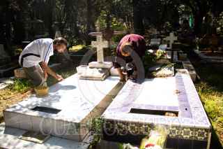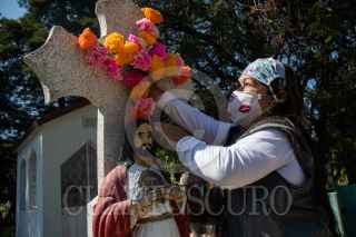 CIUDAD DE MÉXICO, 02NOVIEMBRE2021.- Visita a los fieles difuntos en el panteón de Dolores que se encuentra en la avenida Constituyentes de la alcaldía de Miguel Hidalgo. Familias completas acuden a visitar a sus seres queridos, y arreglar sus tumbas. FOTO: VICTORIA VALTIERRA/CUARTOSCURO.COM