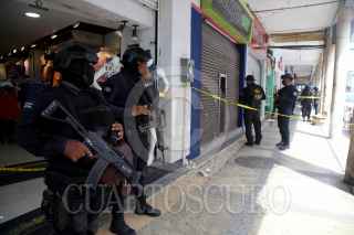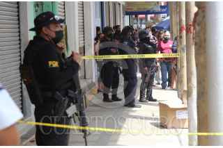 ACAPULCO, GUERRERO, 03NOVIEMBRE2021.- Un hombre que trabajaba en un negocio de accesorios y reparación para celulares fue asesinado dentro del local. El negocio, ubicado junto al zócalo y una cuadra de la Costera, fue resguardado por policías. Testigos narraron que un hombre entro al local y disparo a quema ropa contra el trabajador en cinco ocasiones, para después huir del lugar en un automóvil blanco en donde lo esperaba otra persona. FOTO: CARLOS ALBERTO CARBAJAL/CUARTOSCURO.COM