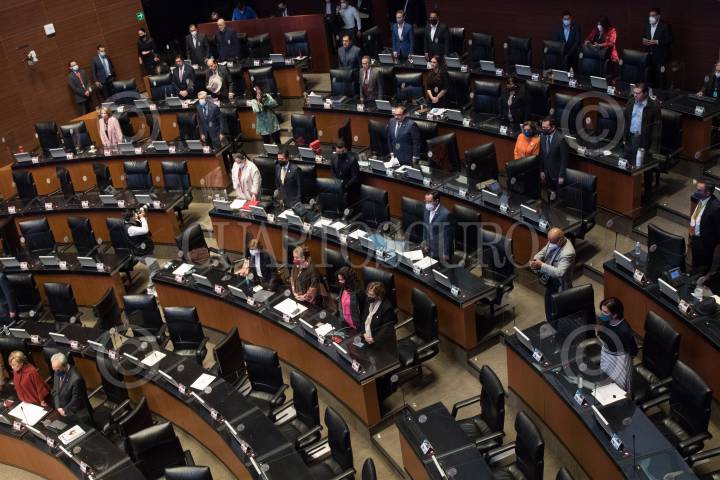 CIUDAD DE MÉXICO, 04NOVIEMBRE2021.- Se realizó la sesión ordinaria en el Senado de la República, la cual estuvo encabezada por Olga Sánchez Cordero. La Cámara Alta alista una reforma que busca crear un marco legal que proteja la labor de repartidores de comida a través de aplicaciones digitales, que en la actualidad no cuentan con ningún tipo de protección, seguridad social y salud por parte de las empresas para las que la laboran. Además el pleno guardo un minuto de silencio por el aniversario del multihomicidio perpetrado en contra de miembros de la familia LeBarón en Bavispe, Sonora. FOTO: MOISÉS PABLO/CUARTOSCURO.COM