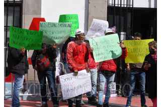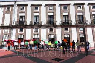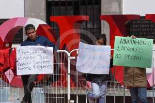 TOLUCA, ESTADO SE MÉXICO, 04NOVIEMBRE2021.- Familiares de trabajadores del ayuntamiento de Toluca se manifestaron en la parte trasera del palacio municipal de cogiendo al alcalde Juan Rodolfo Sánchez Gómez paguen los préstamos que adquirieron y vía nómina les descontaban de su salario, ahora ante la falta de pago por parte del ayuntamiento estas familias tienen embargos encima. FOTO: CRISANTA ESPINOSA AGUILAR /CUARTOSCURO.COM