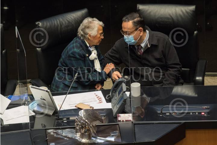 CIUDAD DE MÉXICO, 04NOVIEMBRE2021.- Se realizó la sesión ordinaria en el Senado de la República, la cual estuvo encabezada por Olga Sánchez Cordero. La Cámara Alta alista una reforma que busca crear un marco legal que proteja la labor de repartidores de comida a través de aplicaciones digitales, que en la actualidad no cuentan con ningún tipo de protección, seguridad social y salud por parte de las empresas para las que la laboran. Además el pleno guardo un minuto de silencio por el aniversario del multihomicidio perpetrado en contra de miembros de la familia LeBarón en Bavispe, Sonora. FOTO: MOISÉS PABLO/CUARTOSCURO.COM
