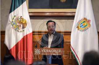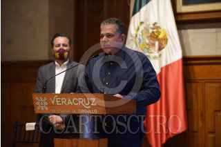 XALAPA, VERACRUZ, 04NOVIEMBRE2021.- Cuitláhuac García Jiménez, gobernador del estado, criticó la falta de policías municipales en el puerto de Veracruz, que esta gobernado por el panista Fernando Yunes, afirmando que otras corporaciones tienen que intervenir para resolver delitos del fuero común en esta ciudad. Hugo Gutiérrez Maldonado, titular de la Secretaría de Seguridad Pública, acompañó al mandatario. FOTO: YERANIA ROLÓN/CUARTOSCURO.COM