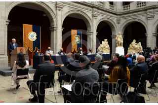 CIUDAD DE MÉXICO, 04NOVIEMBRE2021.- Enrique Graue Wiechers, rector de la Universidad Nacional Autónoma de México (UNAM), presidió la ceremonia a ceremonia conmemorativa por el 240 aniversario de la Academia de San Carlos. El rector Aseveró que la universidd es un semillero de ideas libertarias, de pensamientos críticos e independientes, de un compromiso social y que un fiel reflejo de lo anterior son sus facultades de Artes y Diseño (FAD) y de Arquitectura (FA), herederas inmediatas de la Academia de San Carlos. A su vez, recordó que por la Academia pasaron figuras como Francisco Díaz de León Medina, José María Velasco, Manuel Tolsá, Antonio Rivas Mercado, Saturnino Herrán, José Clemente Orozco y Diego Rivera, FOTO: UNAMCUARTOSCURO.COM