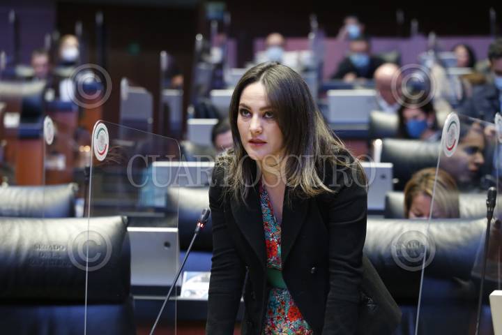 CIUDAD DE MÉXICO, 04NOVIEMBRE2021.- Se realizó la sesión ordinaria en el Senado de la República, la cual estuvo encabezada por Olga Sánchez Cordero. La Cámara Alta alista una reforma que busca crear un marco legal que proteja la labor de repartidores de comida a través de aplicaciones digitales, que en la actualidad no cuentan con ningún tipo de protección, seguridad social y salud por parte de las empresas para las que la laboran. Además el pleno guardo un minuto de silencio por el aniversario del multihomicidio perpetrado en contra de miembros de la familia LeBarón en Bavispe, Sonora. FOTO: CUARTOSCURO.COM