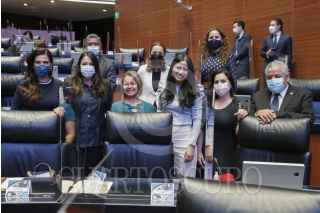 CIUDAD DE MÉXICO, 04NOVIEMBRE2021.- Se realizó la sesión ordinaria en el Senado de la República, la cual estuvo encabezada por Olga Sánchez Cordero. La Cámara Alta alista una reforma que busca crear un marco legal que proteja la labor de repartidores de comida a través de aplicaciones digitales, que en la actualidad no cuentan con ningún tipo de protección, seguridad social y salud por parte de las empresas para las que la laboran. Además el pleno guardo un minuto de silencio por el aniversario del multihomicidio perpetrado en contra de miembros de la familia LeBarón en Bavispe, Sonora. FOTO: CUARTOSCURO.COM